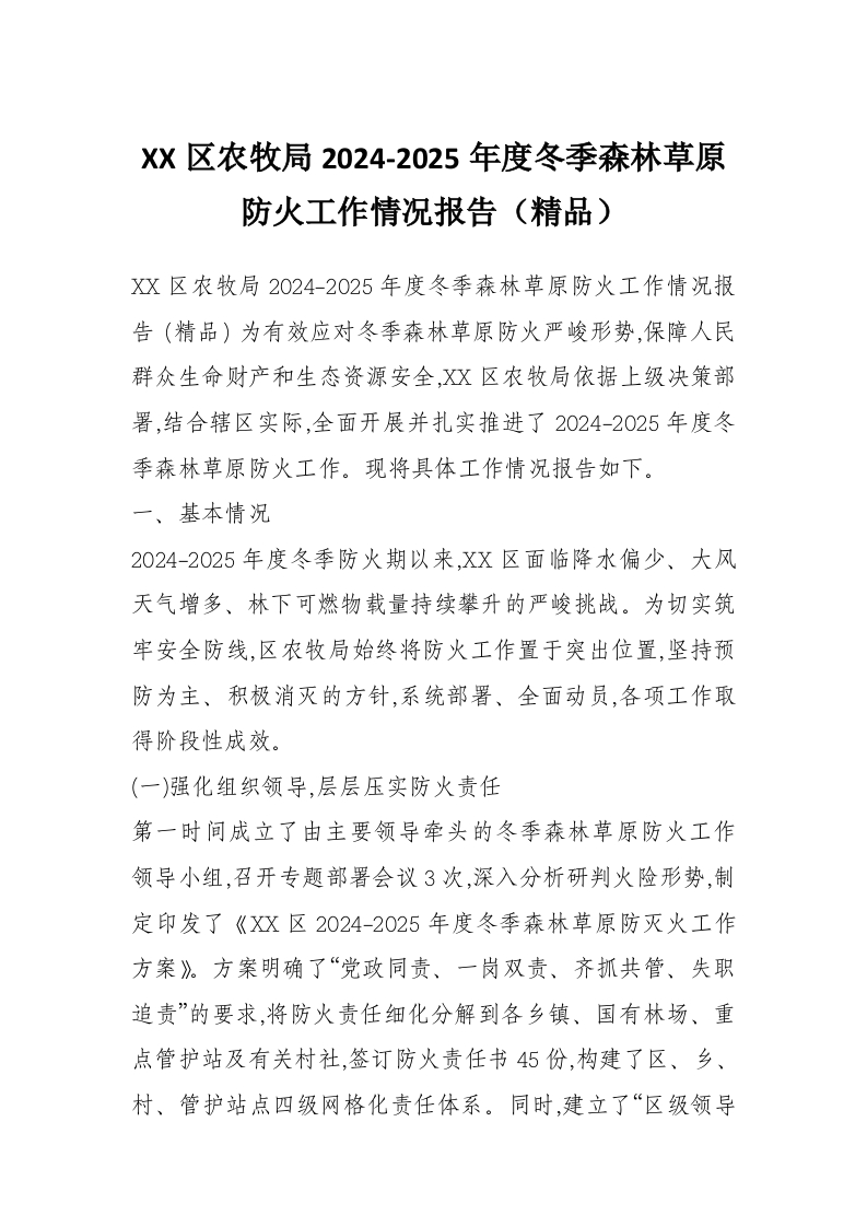 首页材料汇编XX区农牧局2024-2025年度冬季森林草原防火工作情况报告(精品)