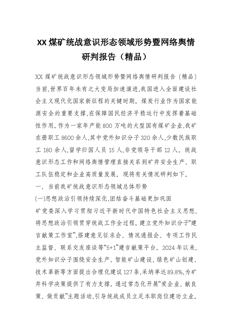 首页材料汇编XX煤矿统战意识形态领域形势暨网络舆情研判报告(精品)