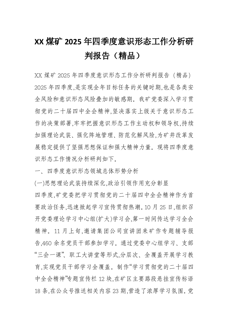 XX煤矿2025年四季度意识形态工作分析研判报告(精品)