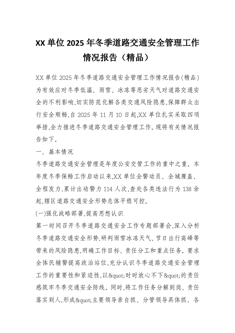 XX单位2025年冬季道路交通安全管理工作情况报告(精品)