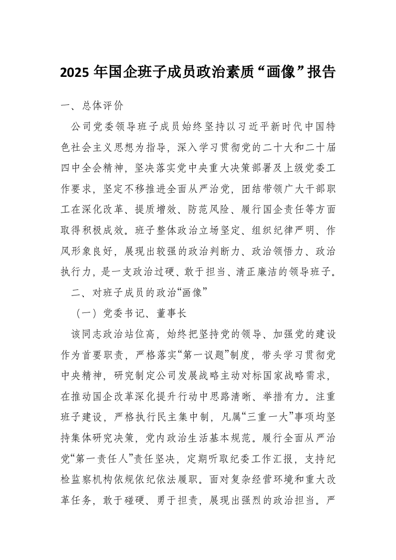 首页材料汇编2025年国企班子成员政治素质“画像”报告