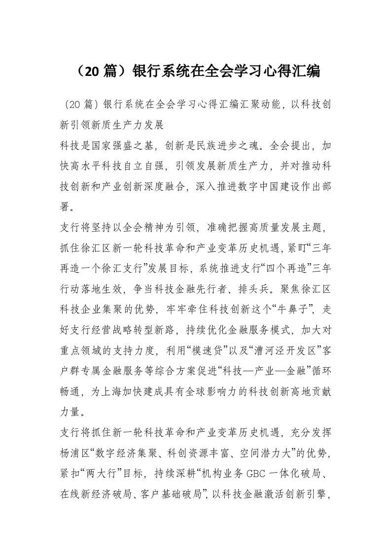 (20篇)银行系统在***学习心得汇编