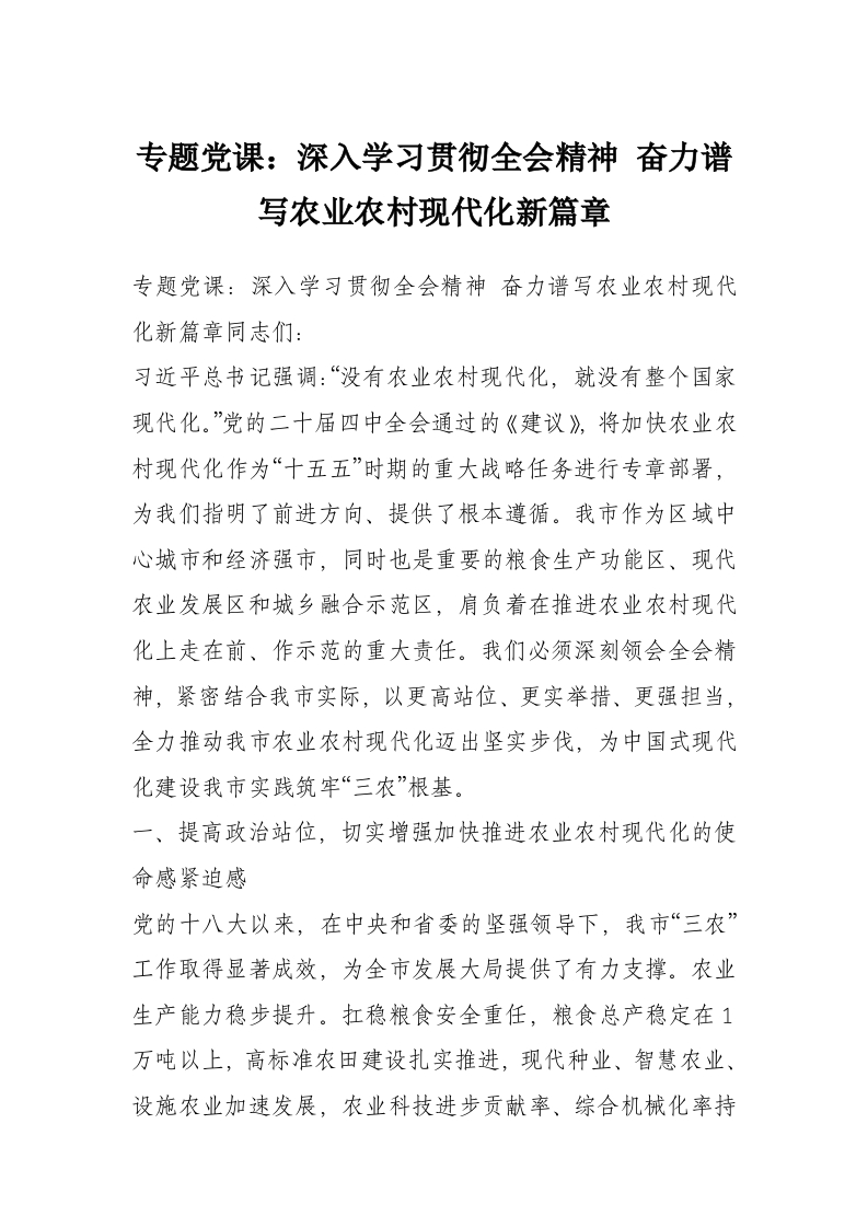 专题党课:深入学习贯彻***精神 奋力谱写农业农村现代化新篇章