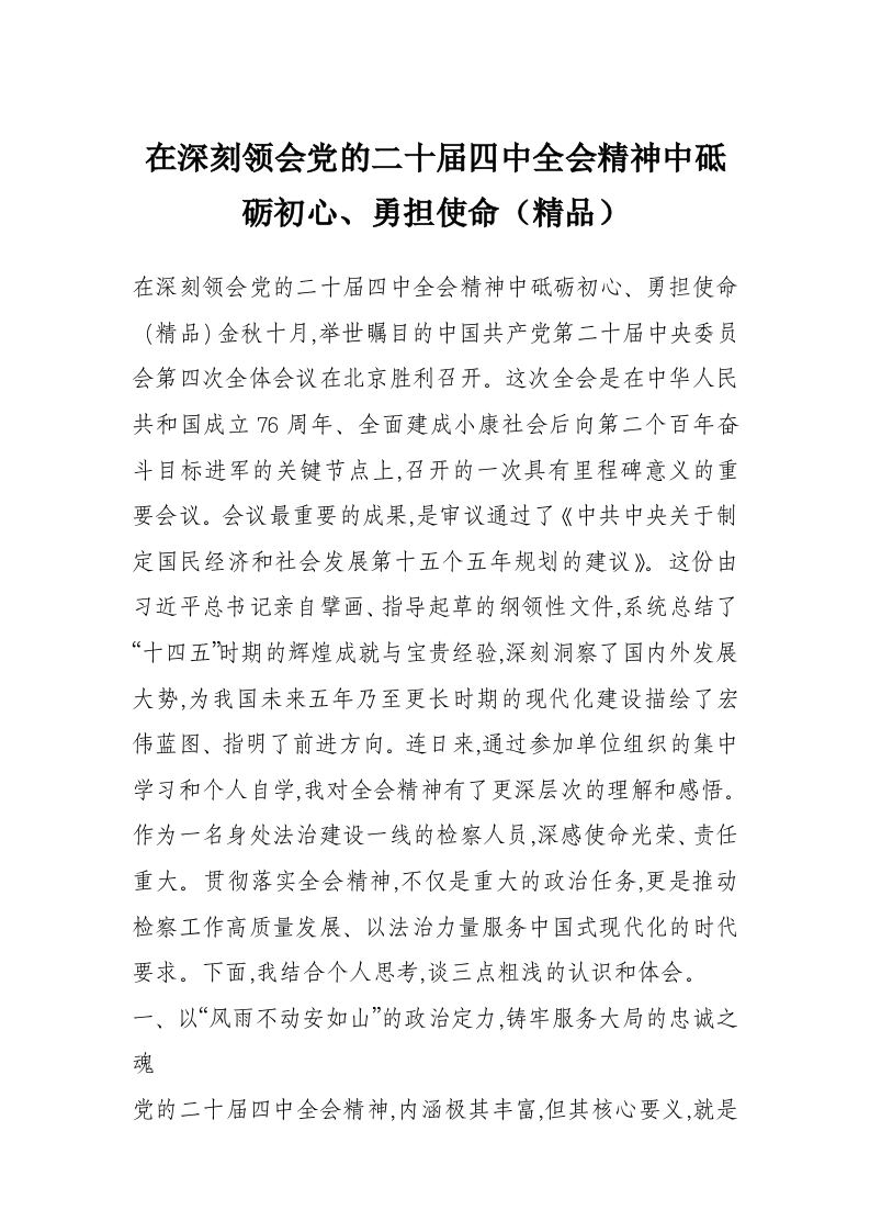 在深刻领会党的二十届四中***精神中砥砺初心、勇担使命(精品)