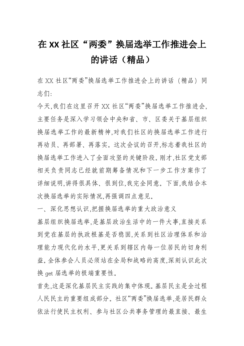 在XX社区“两委”换届选举工作推进会上的讲话(精品)