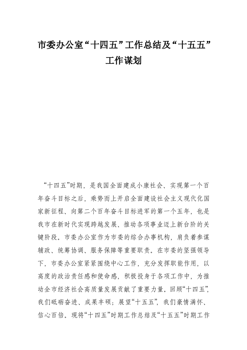 市委办公室“十四五”工作总结及“十五五”工作谋划