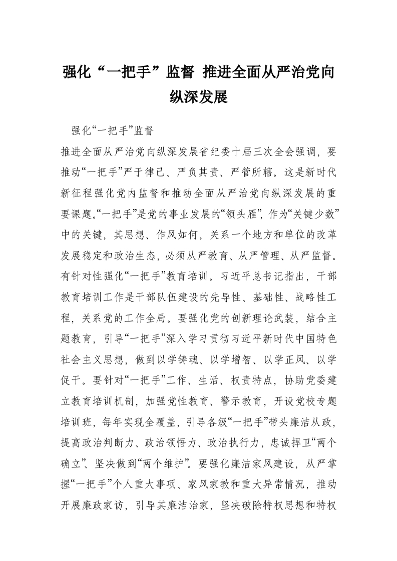 强化“一把手”监督 推进全面从严治党向纵深发展
