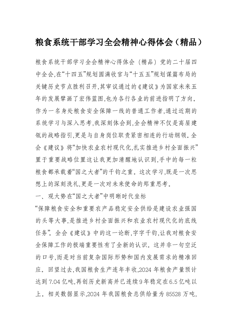 粮食系统干部学习***精神心得体会(精品)