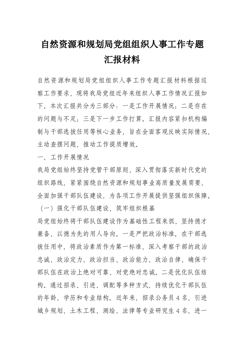 首页工作文档自然资源和规划局党组组织人事工作专题汇报材料