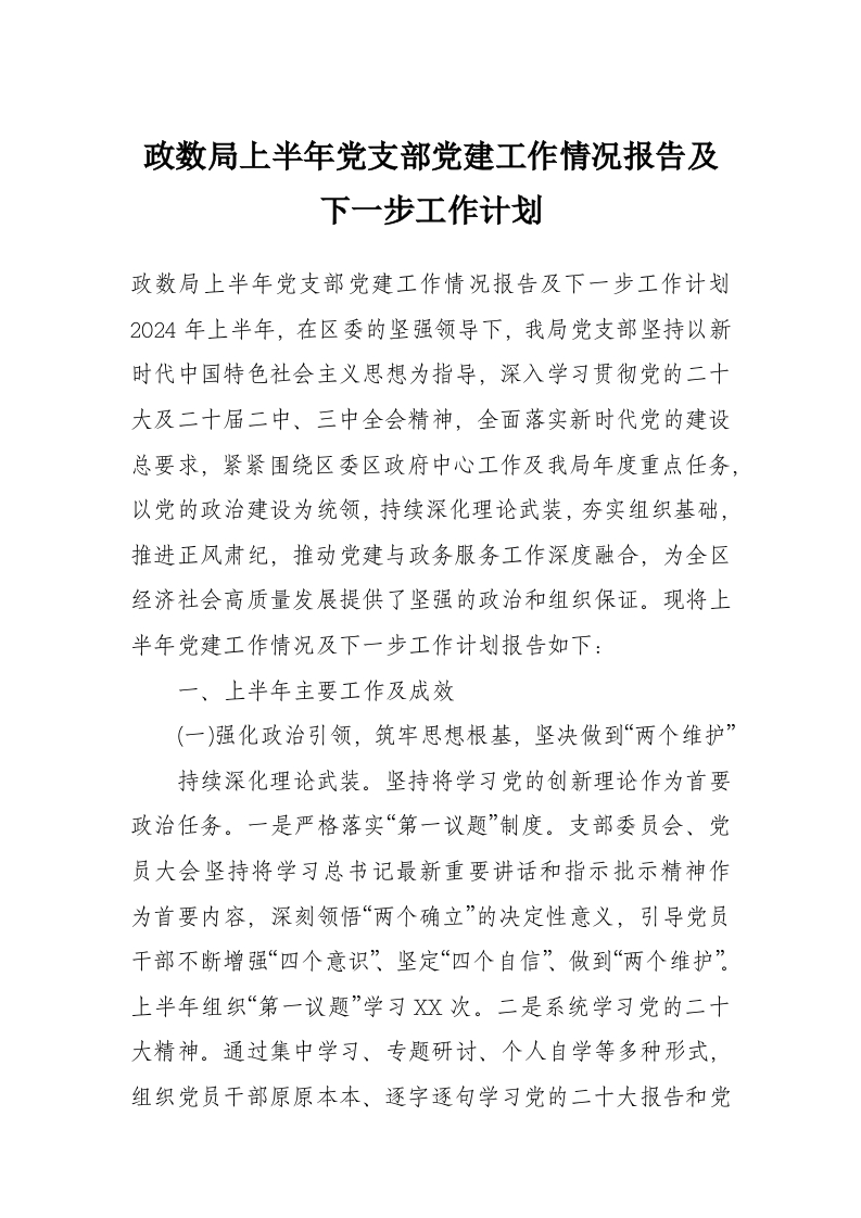 政数局上半年党支部党建工作情况报告及下一步工作计划