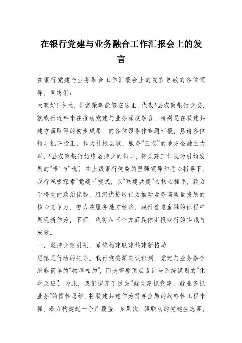 首页工作文档在银行党建与业务融合工作汇报会上的发言
