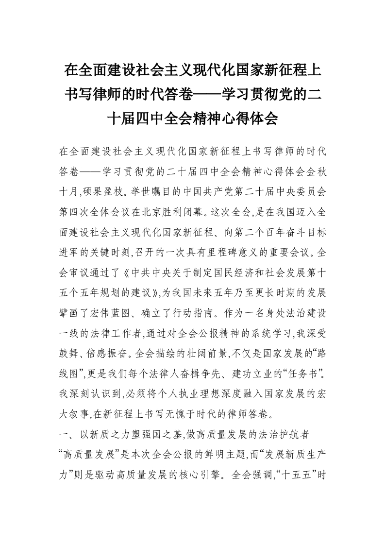 在全面建设社会主义现代化国家新征程上书写律师的时代答卷——学习贯彻党的二十届四中***精神心得体会