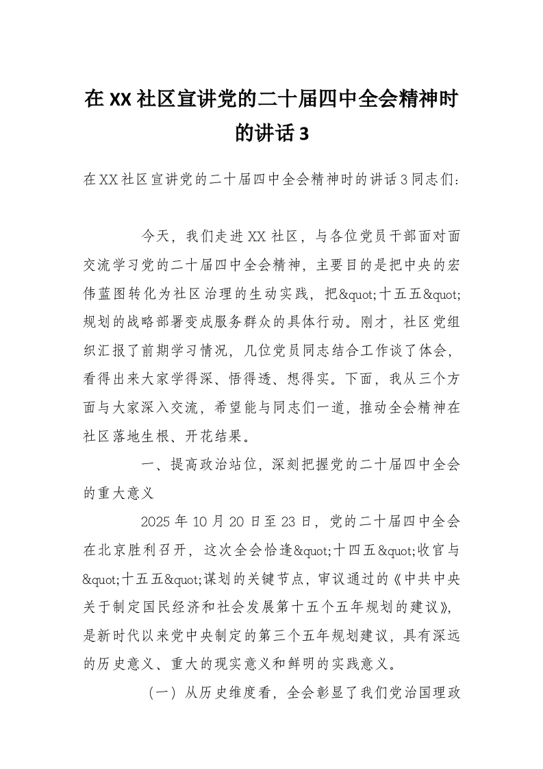在XX社区宣讲党的二十届四中***精神时的讲话3