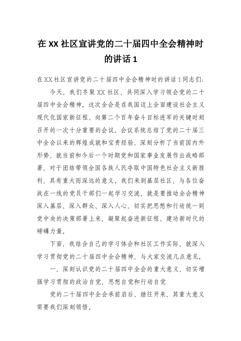 在XX社区宣讲党的二十届四中***精神时的讲话1