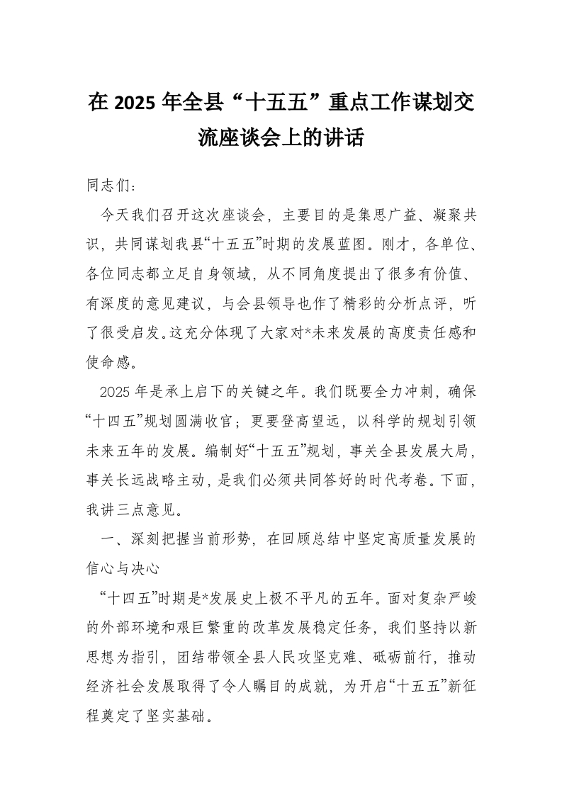在2025年全县“十五五”重点工作谋划交流座谈会上的讲话