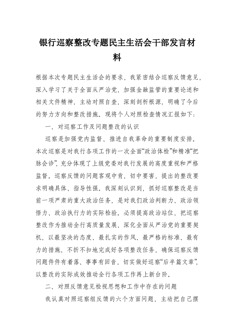 首页学习提升银行巡察整改专题民主生活会干部发言材料
