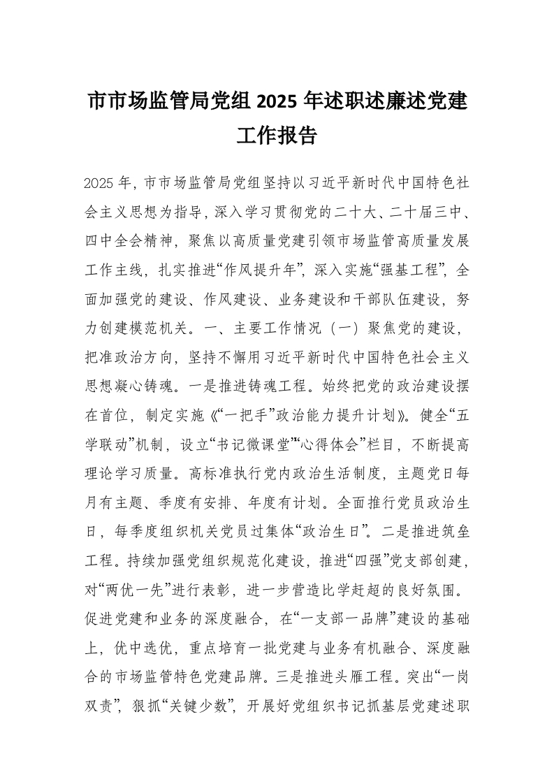 首页学习提升市市场监管局党组2025年述职述廉述党建工作报告
