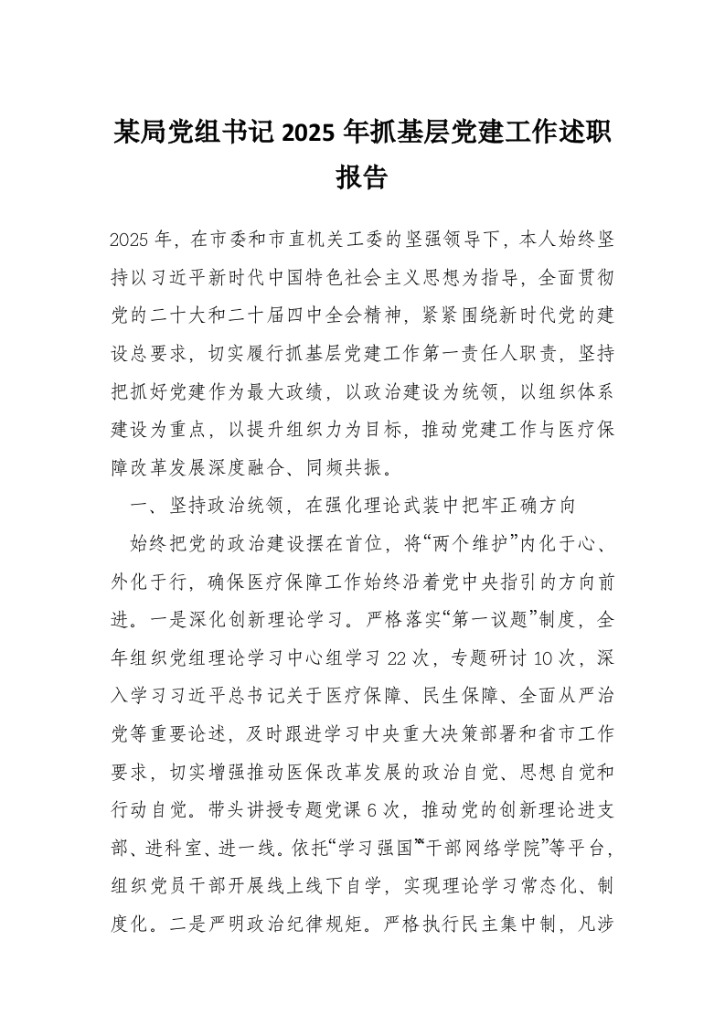 首页写作素材某局党组书记2025年抓基层党建工作述职报告