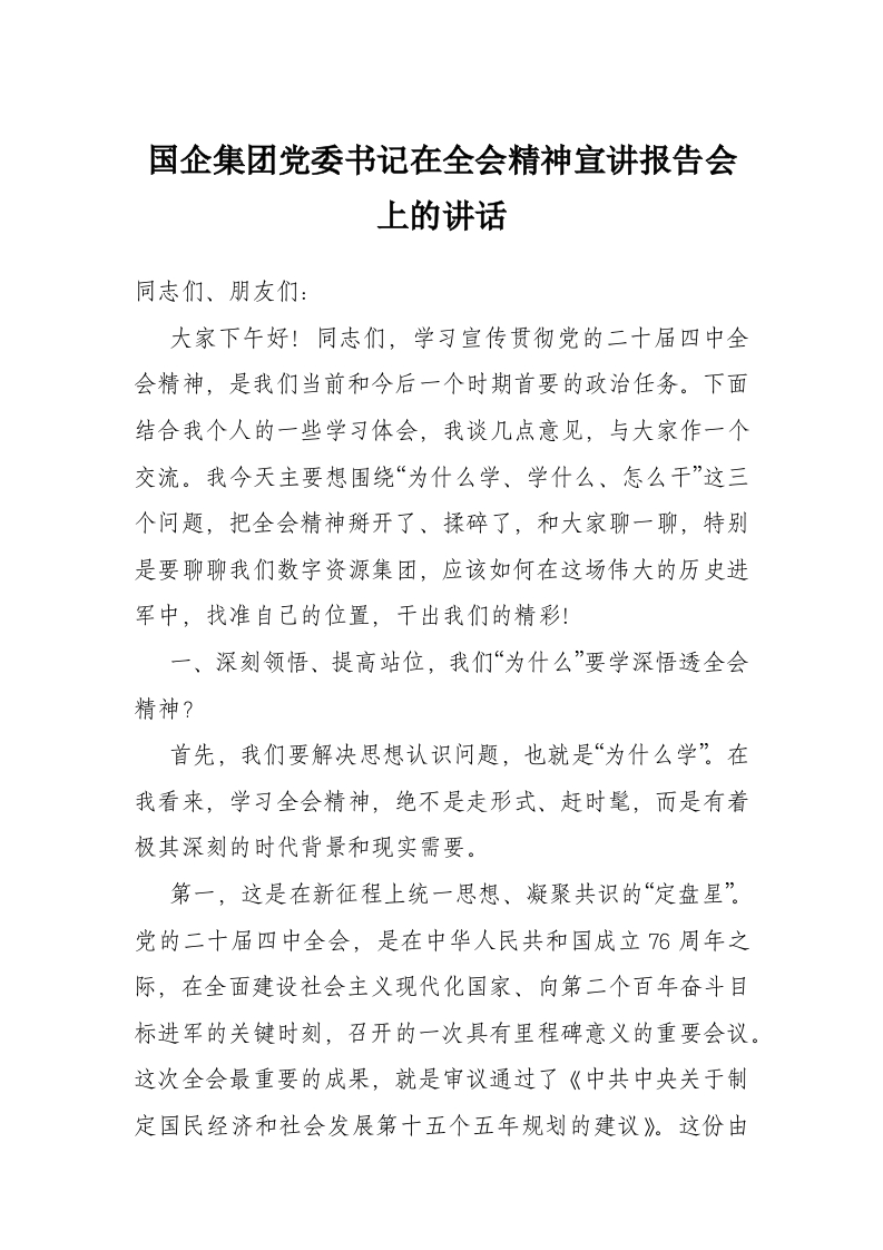 国企集团党委书记在***精神宣讲报告会上的讲话