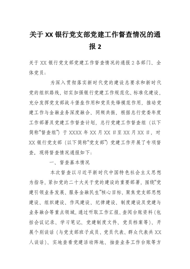 首页写作素材关于XX银行党支部党建工作督查情况的通报2