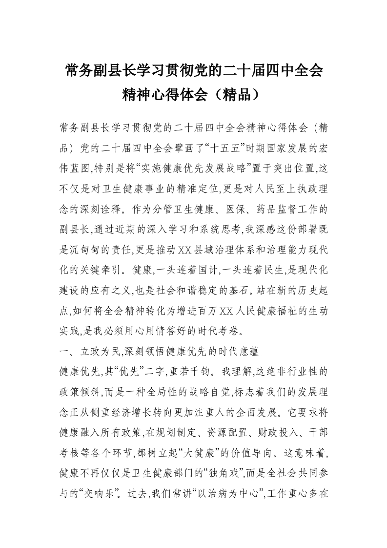 常务副县长学习贯彻党的二十届四中***精神心得体会(精品)