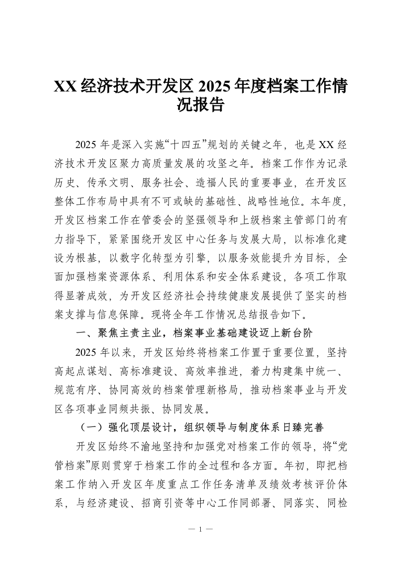 XX经济技术开发区2025年度档案工作情况报告