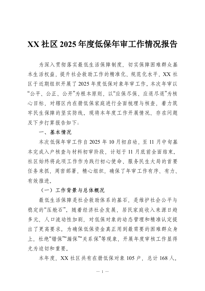 首页精选范文XX社区2025年度低保年审工作情况报告