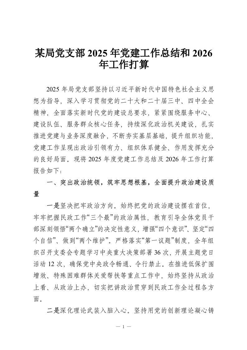 首页精选范文某局党支部2025年党建工作总结和2026年工作打算
