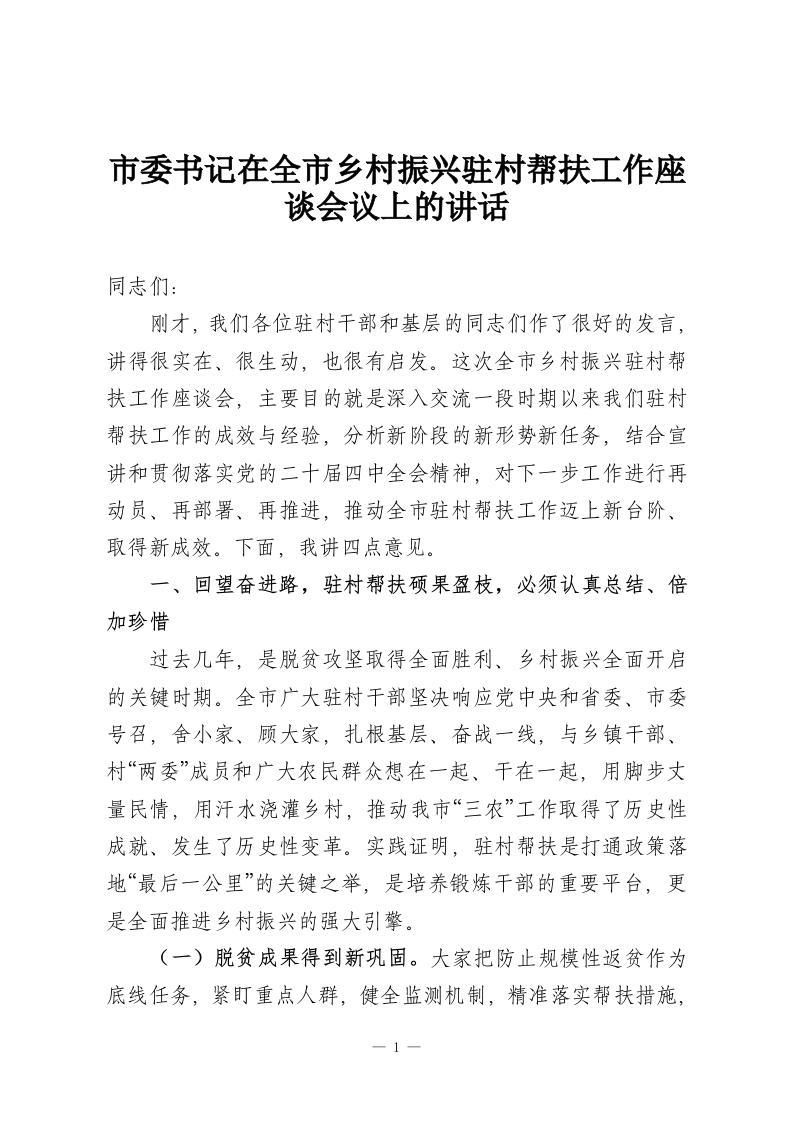 市委书记在全市乡村振兴驻村帮扶工作座谈会议上的讲话