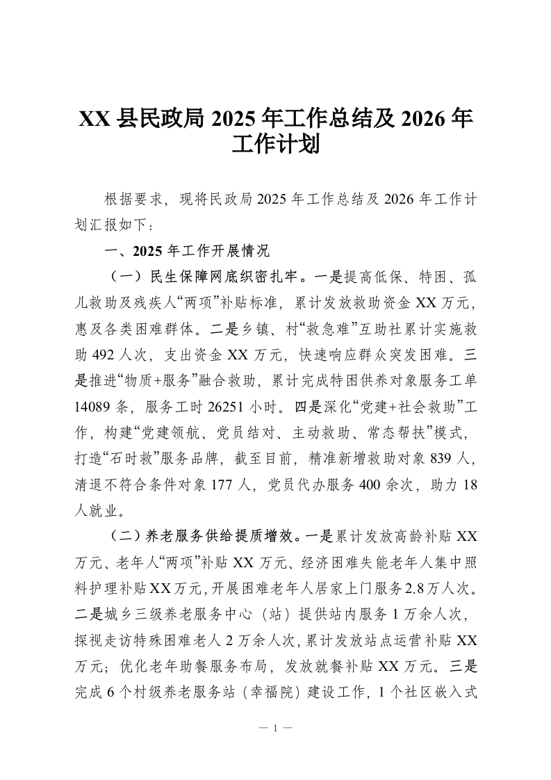 首页精选范文XX县民政局2025年工作总结及2026年工作计划