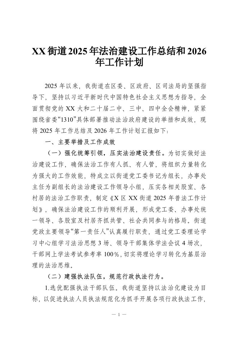 首页精选范文XX街道2025年法治建设工作总结和2026年工作计划