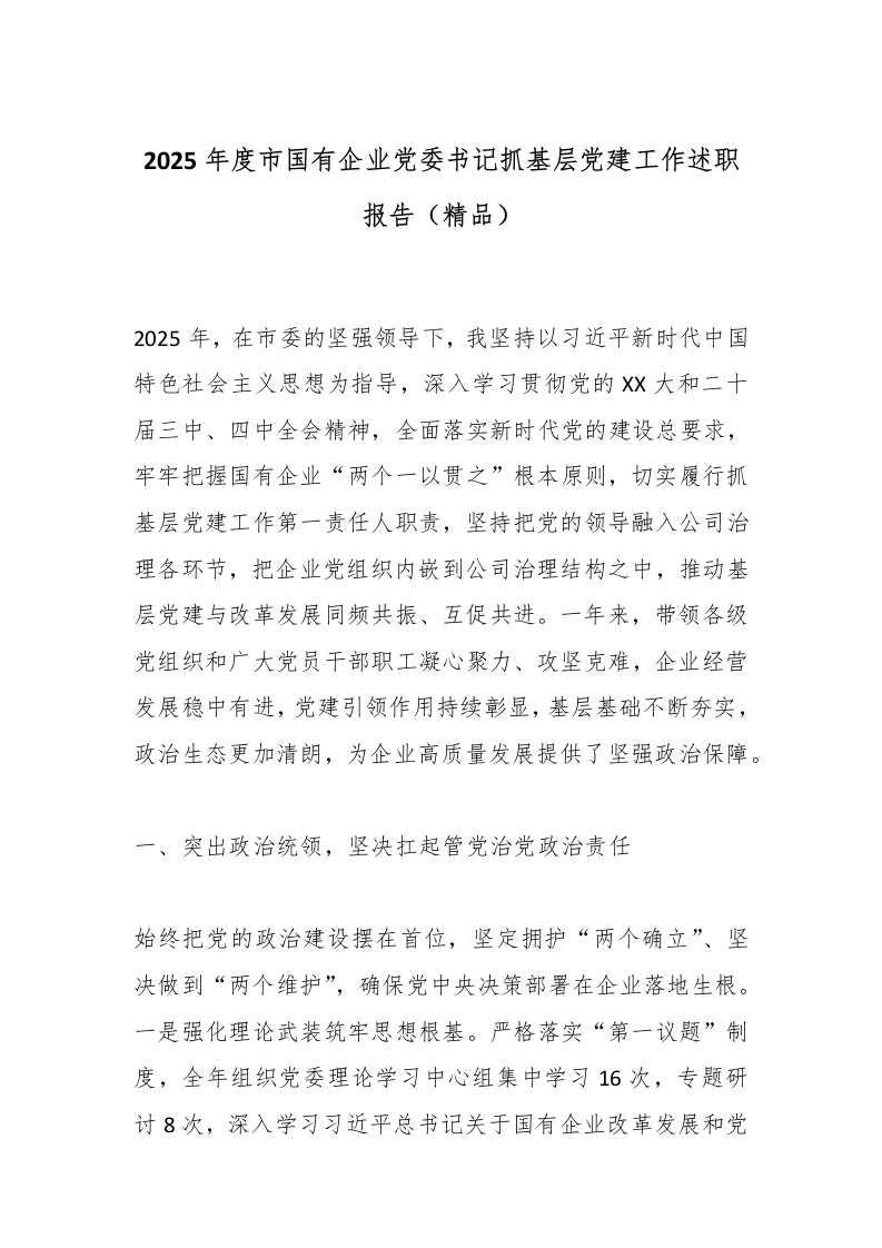 2025年度市国有企业党委书记抓基层党建工作述职报告(精品)_副本