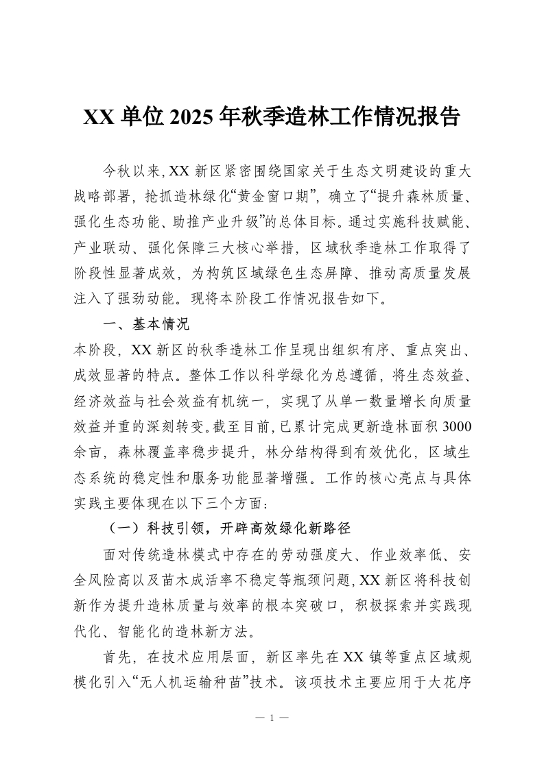 首页精选范文XX单位2025年秋季造林工作情况报告