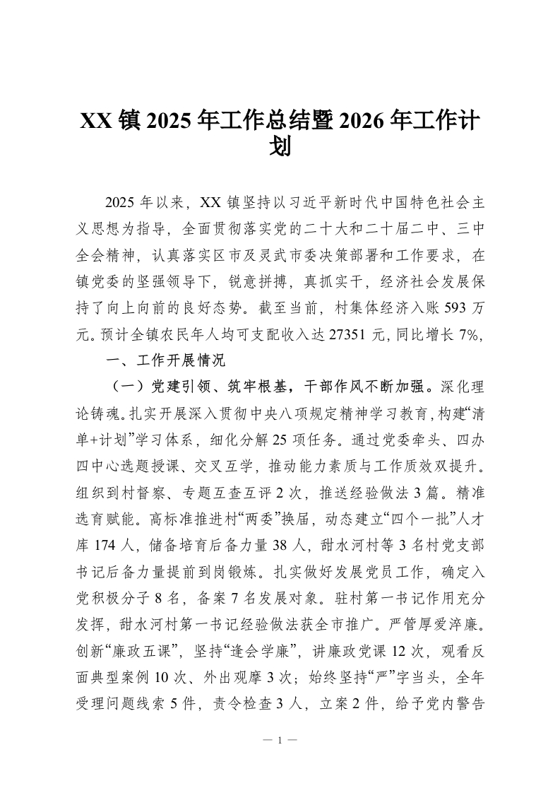 首页精选范文XX镇2025年工作总结暨2026年工作计划