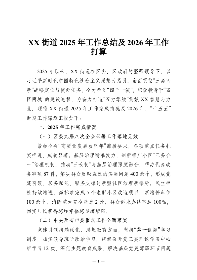 首页精选范文XX街道2025年工作总结及2026年工作打算