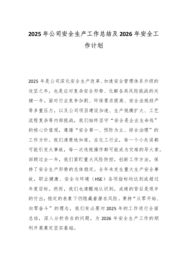 2025年公司安全生产工作总结及2026年安全工作计划_副本