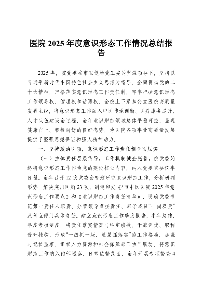 首页精选范文医院2025年度意识形态工作情况总结报告