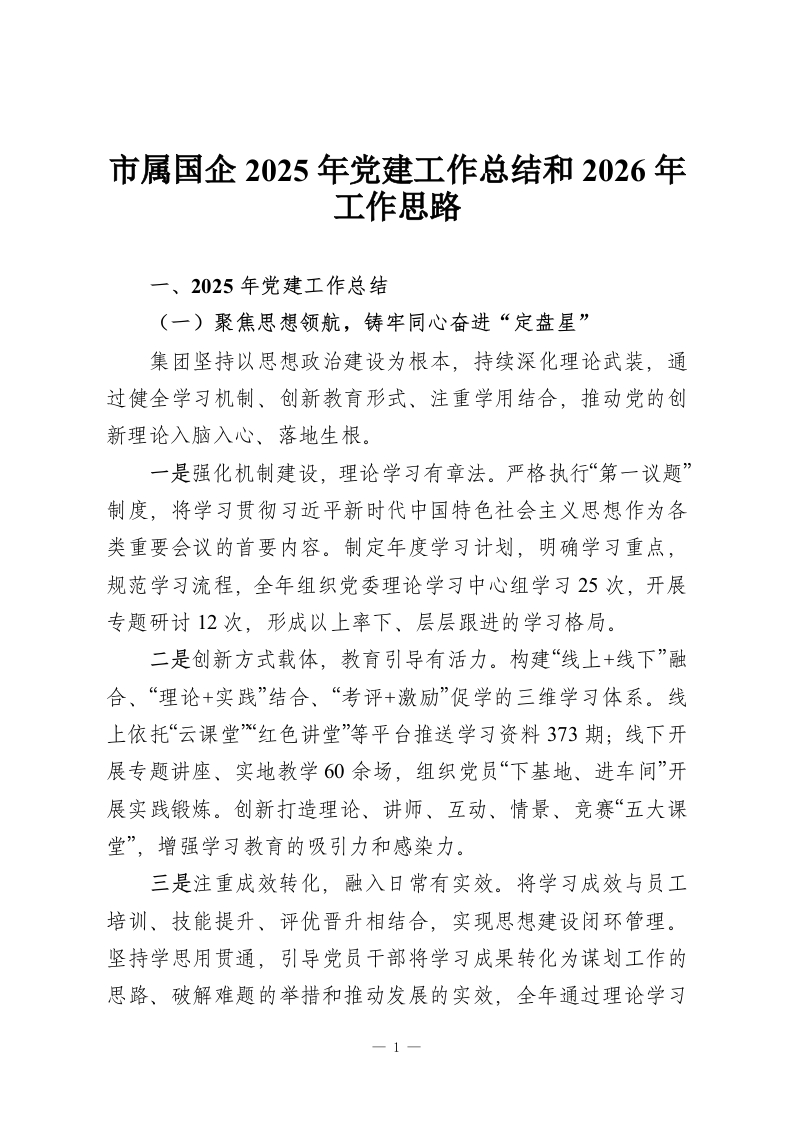 首页精选范文市属国企2025年党建工作总结和2026年工作思路