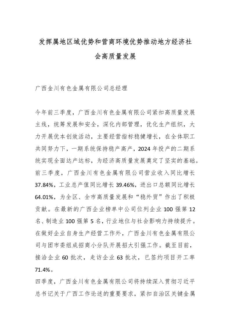 发挥属地区域优势和营商环境优势推动地方经济社会高质量发展_副本