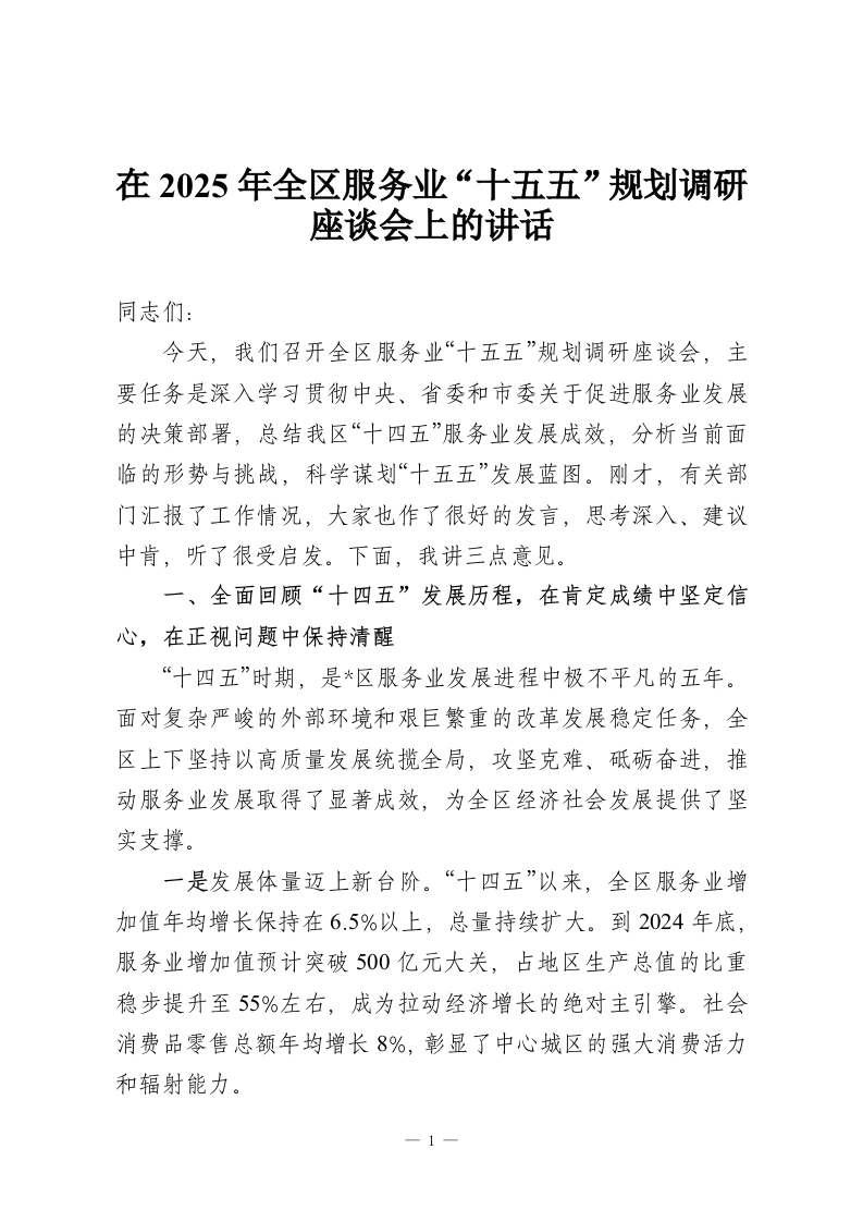 在2025年全区服务业“十五五”规划调研座谈会上的讲话