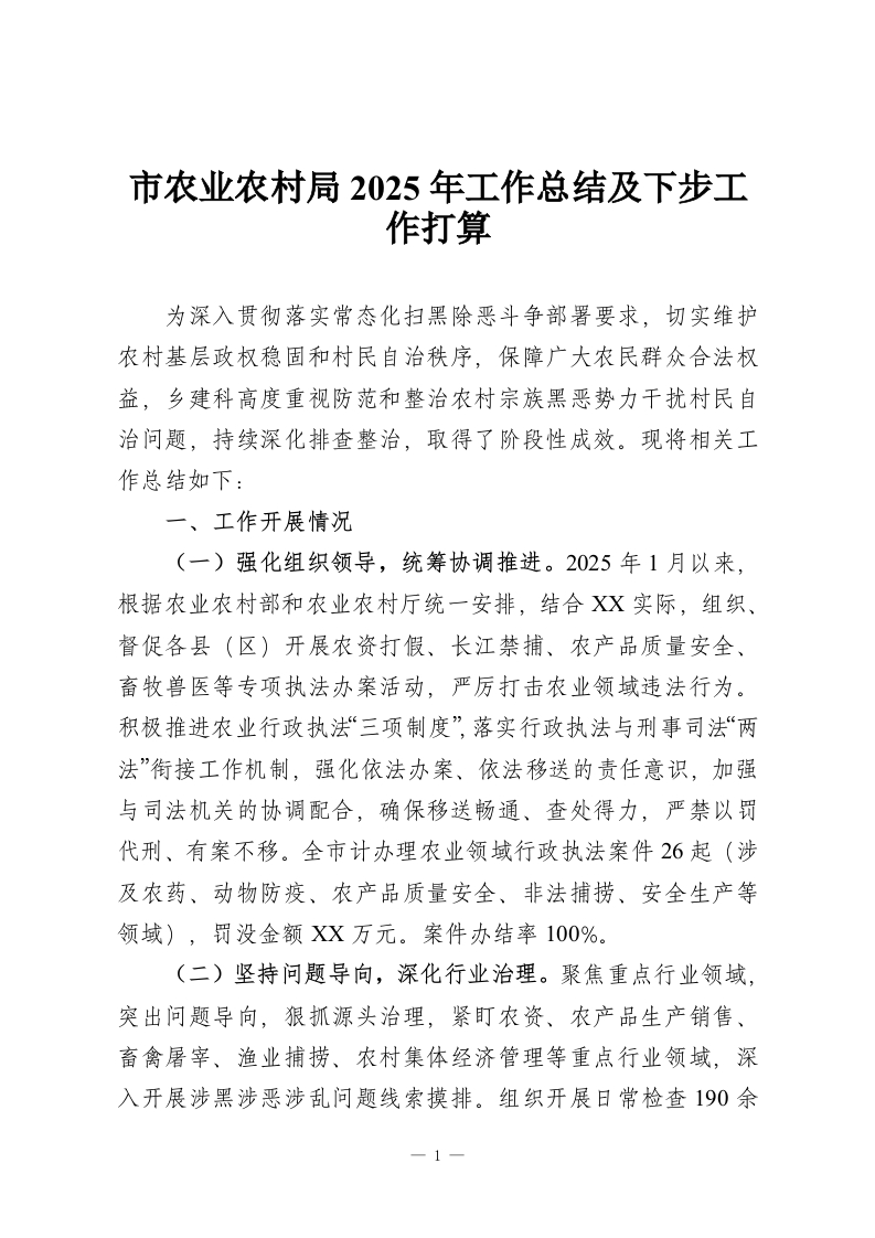 首页精选范文市农业农村局2025年工作总结及下步工作打算