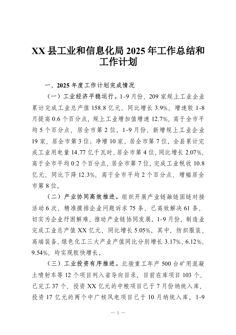 首页精选范文XX县工业和信息化局2025年工作总结和工作计划
