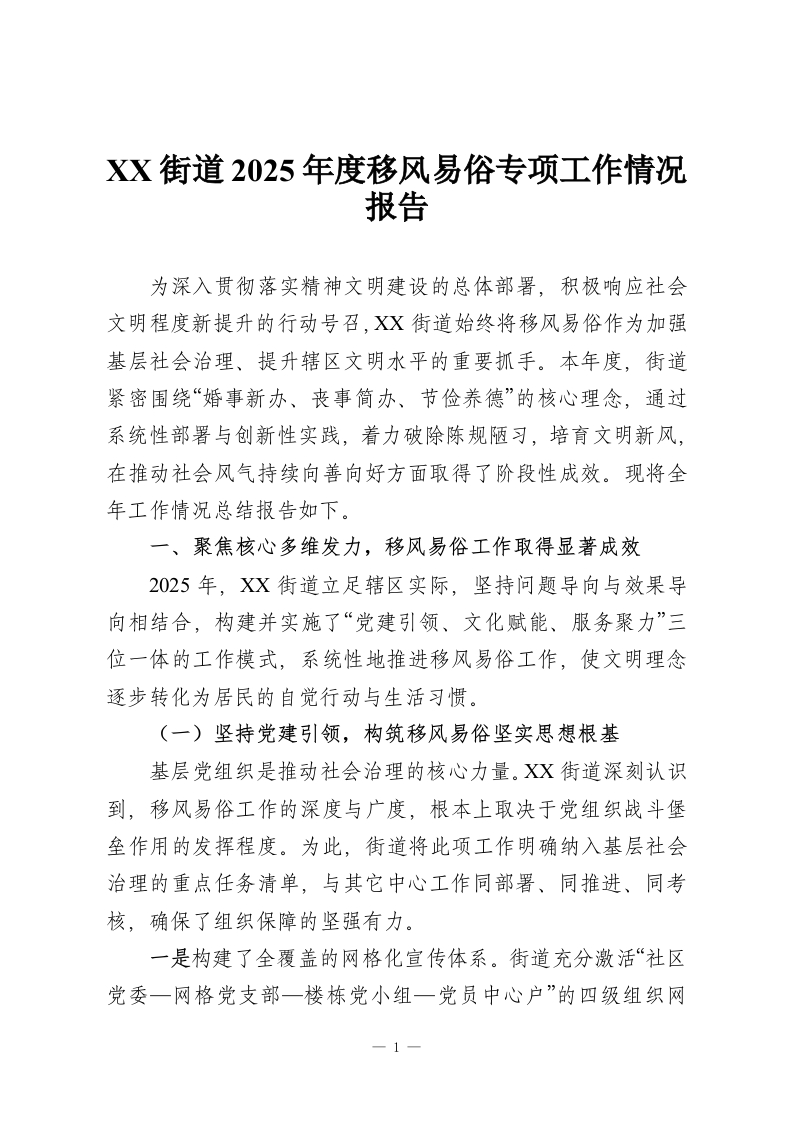 首页精选范文XX街道2025年度移风易俗专项工作情况报告
