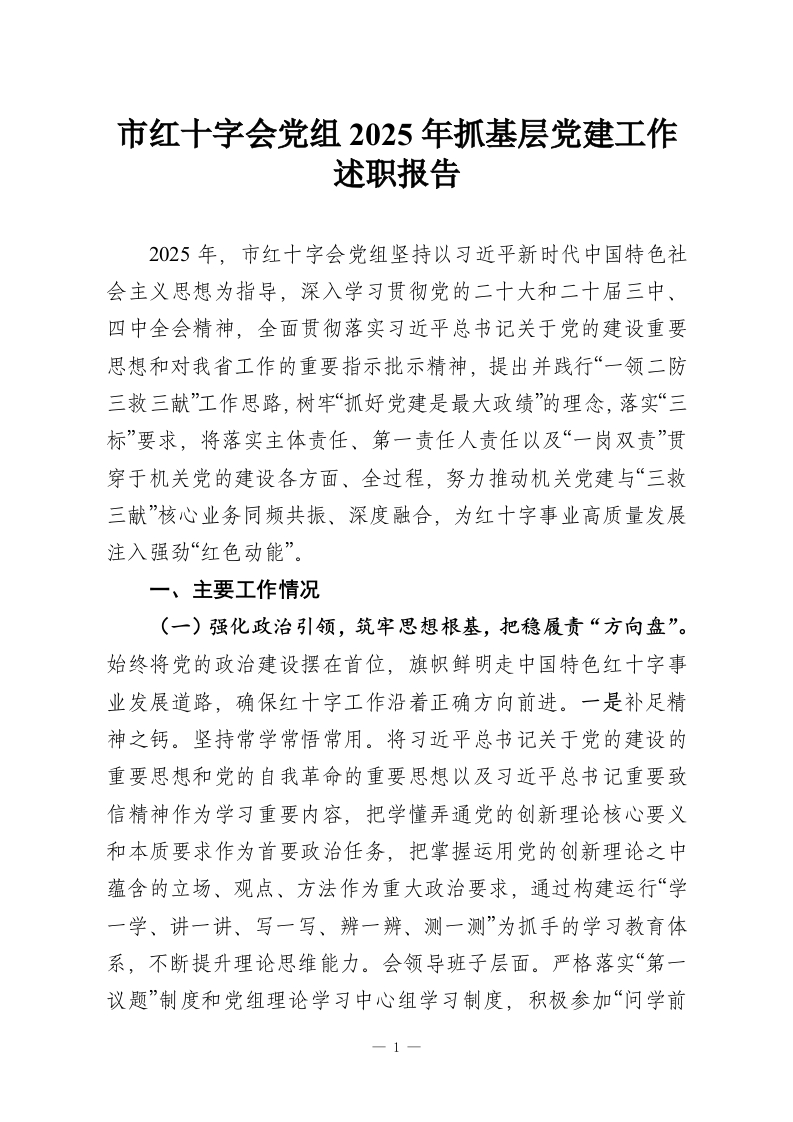 首页材料汇编市红十字会党组2025年抓基层党建工作述职报告
