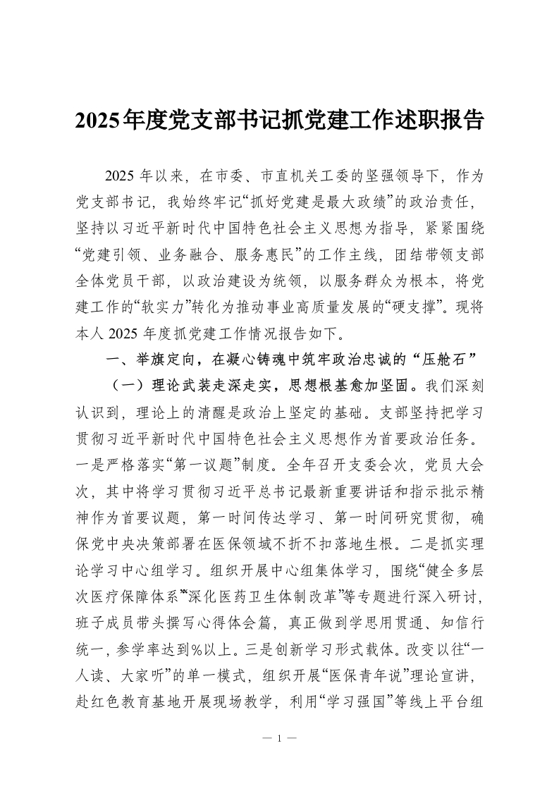 2025年度党支部书记抓党建工作述职报告