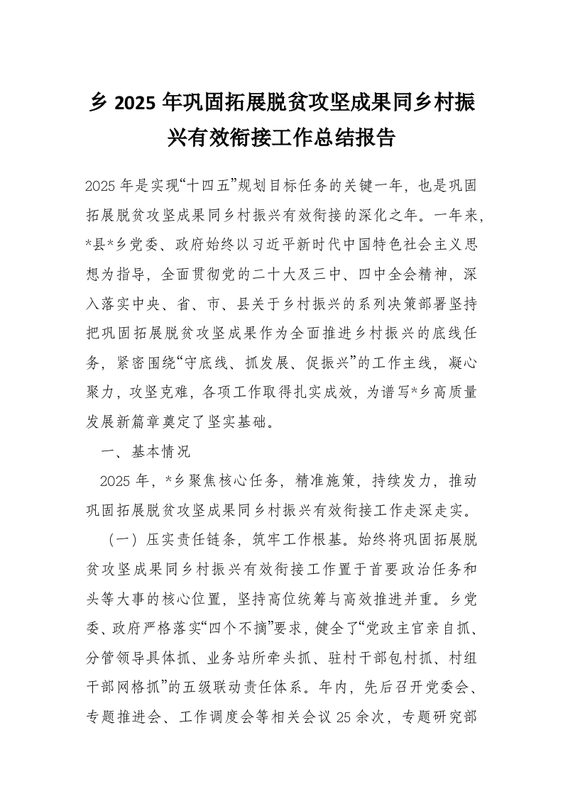 乡2025年巩固拓展脱贫攻坚成果同乡村振兴有效衔接工作总结报告