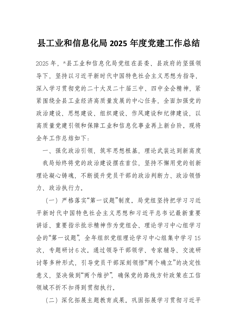 首页精选范文县工业和信息化局2025年度党建工作总结