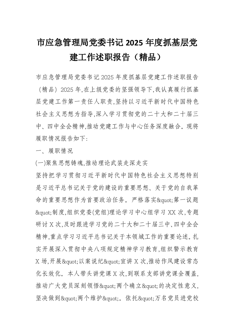 首页精选范文市应急管理局党委书记2025年度抓基层党建工作述职报告(精品)