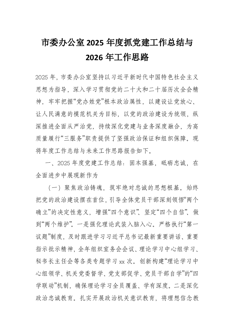 首页精选范文市委办公室2025年度抓党建工作总结与2026年工作思路
