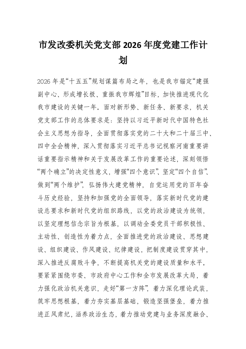 首页精选范文市发改委机关党支部2026年度党建工作计划